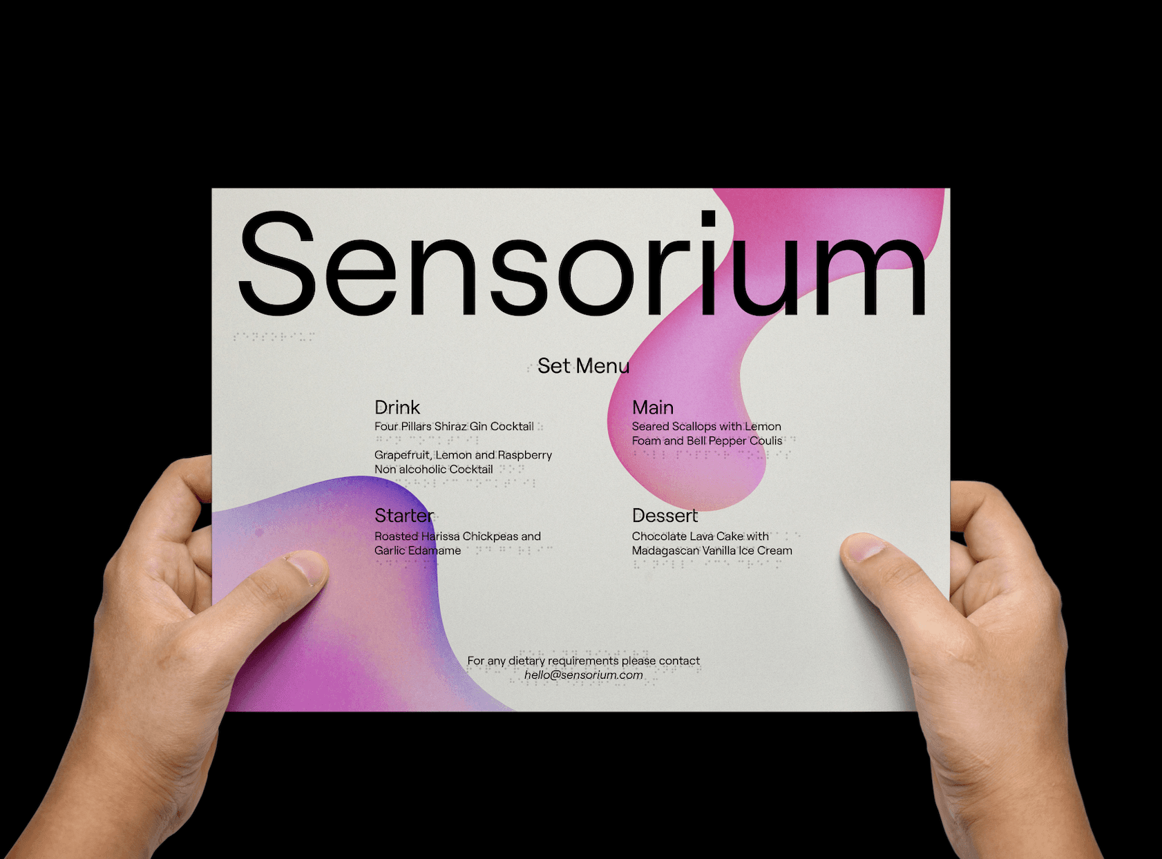 Sensorium was a self-initiated project inspired by The Senses: Design Beyond Vision. It explored the concept of a multisensory dining experience where sound, scent, touch and taste converge to heighten perception beyond sight.